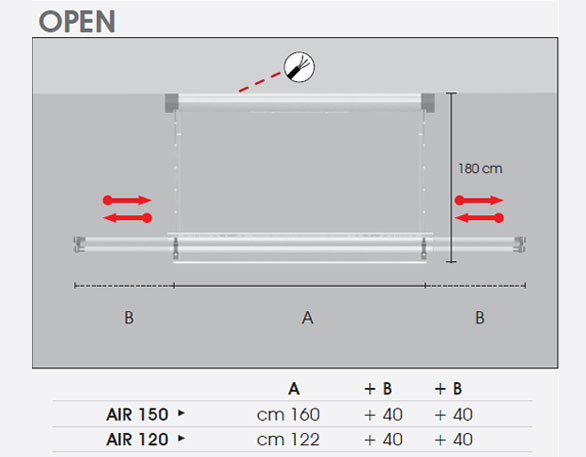 | Չափս | Air 150 (Ե 160 x Լ 57 x Բ 30 սմ) Air 120 (Ե 122 x Լ 57 x Բ 30 սմ) |